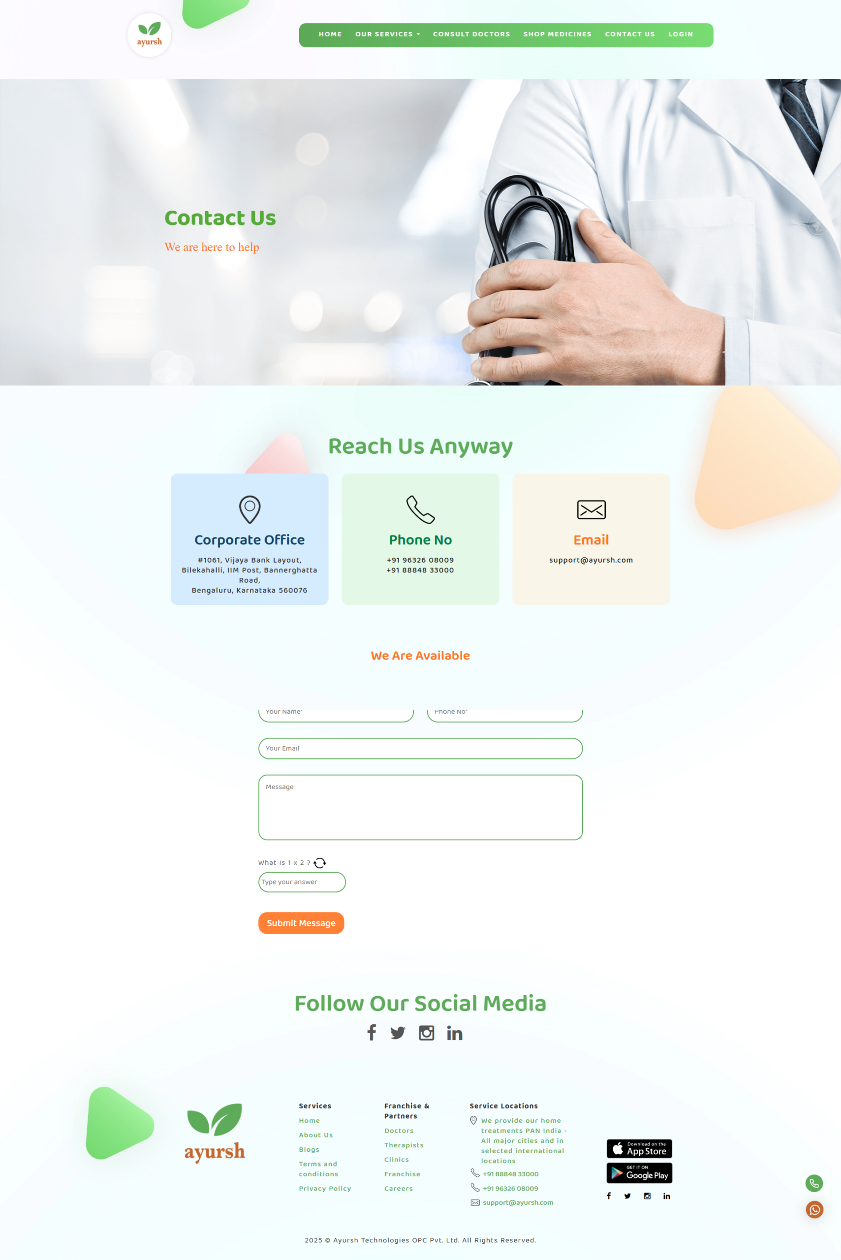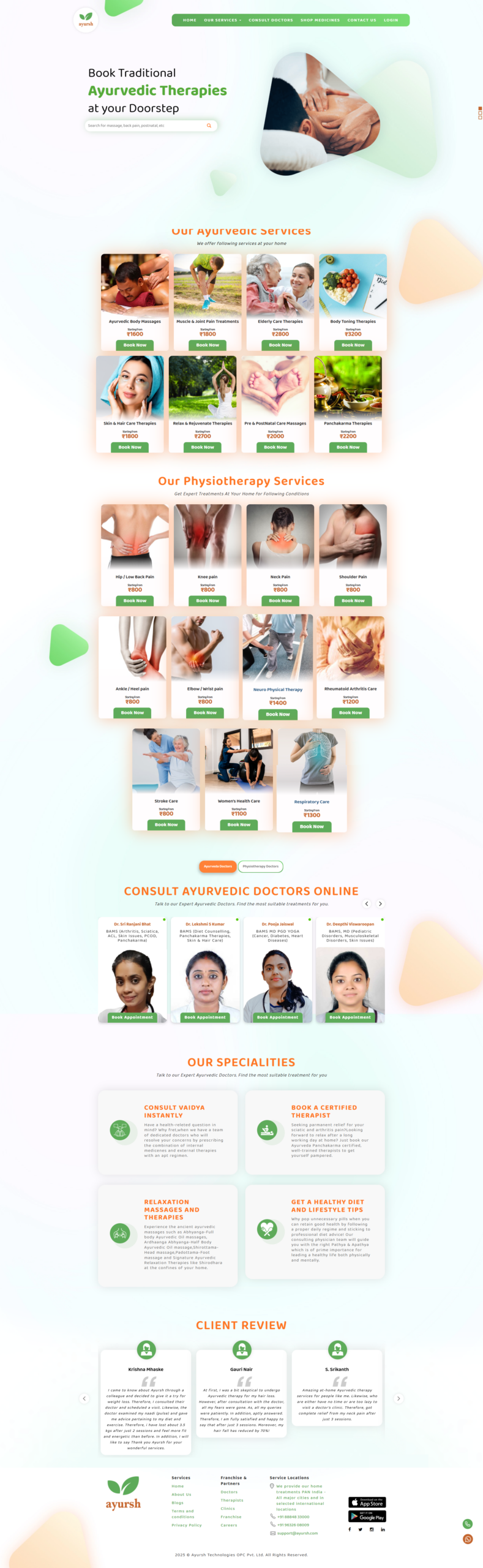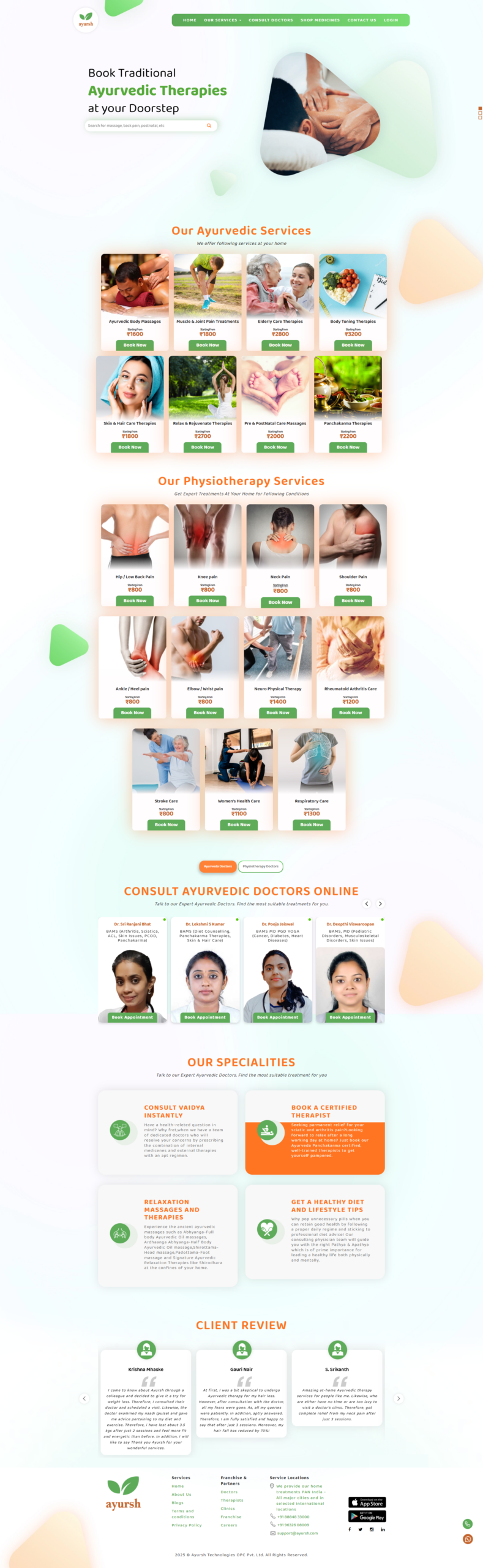 The site’s design focuses on clarity, calm aesthetics, and an intuitive shopping experience, reinforcing the core values of Ayurveda, purity, and plant-based formulations.
