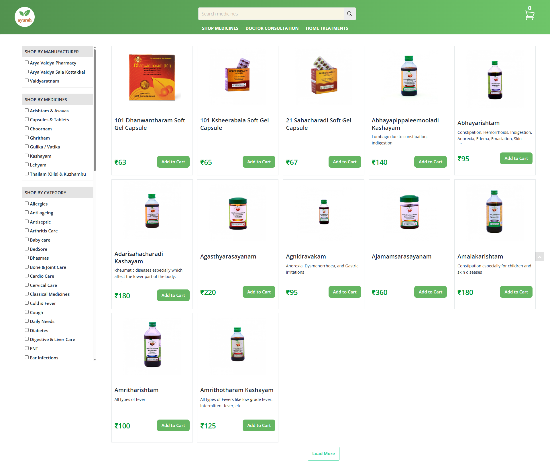 Integrated clear “Add to Cart” and “Shop Now” calls to action while supporting educational sections about Ayurveda to reduce friction between discovery and purchase.