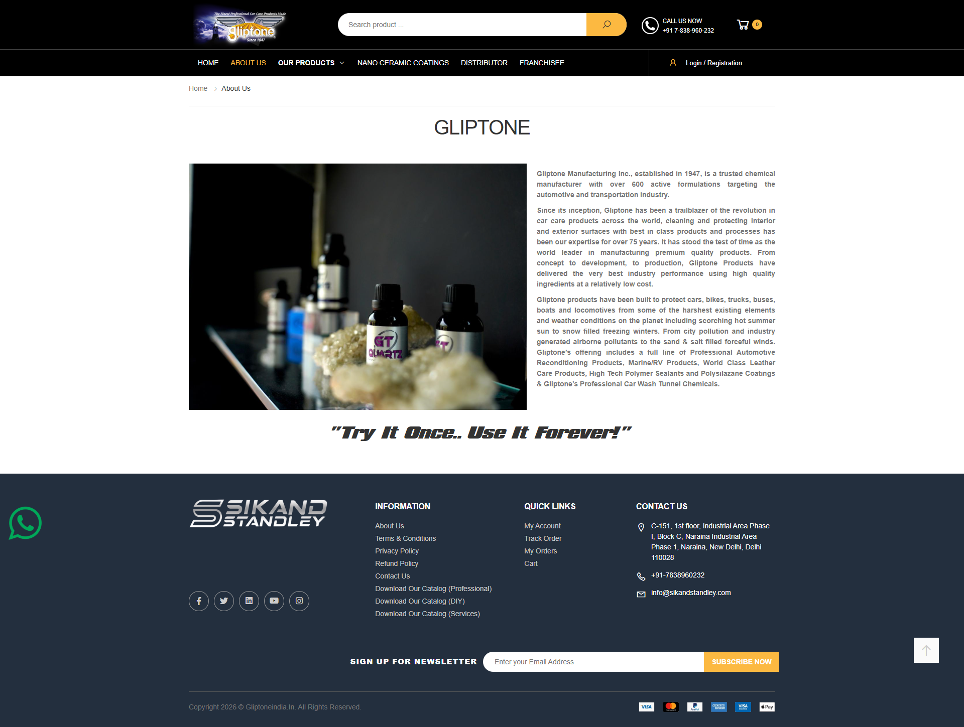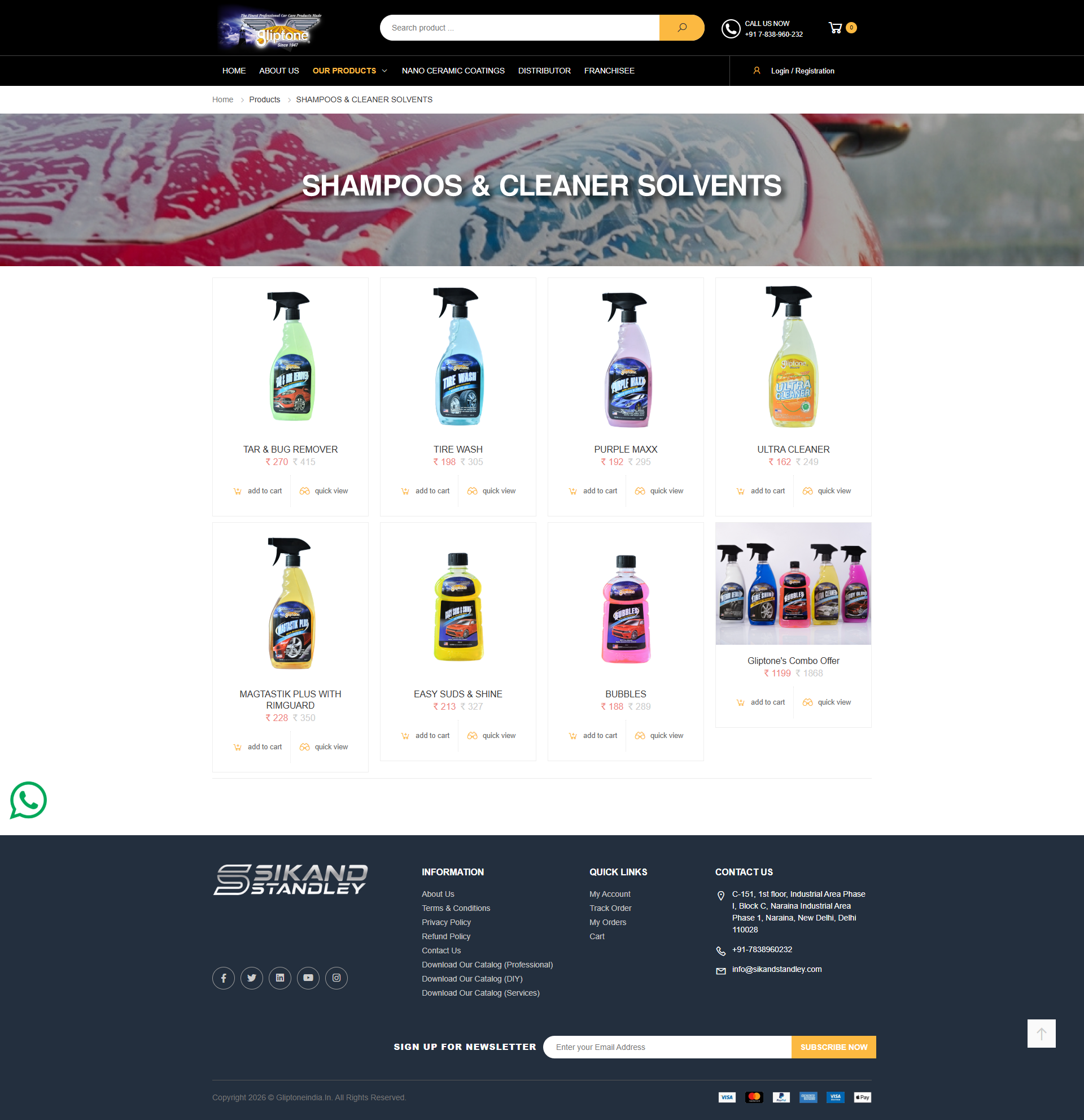 The Gliptone India site was built to showcase a specialized range of car cleaning, paint care, protective coatings, and solvent products used in professional auto detailing and vehicle maintenance. The platform aims to provide clear access to product information, encourage purchase decisions, and support both enthusiast consumers and automotive professionals in selecting the right cleaning solutions.