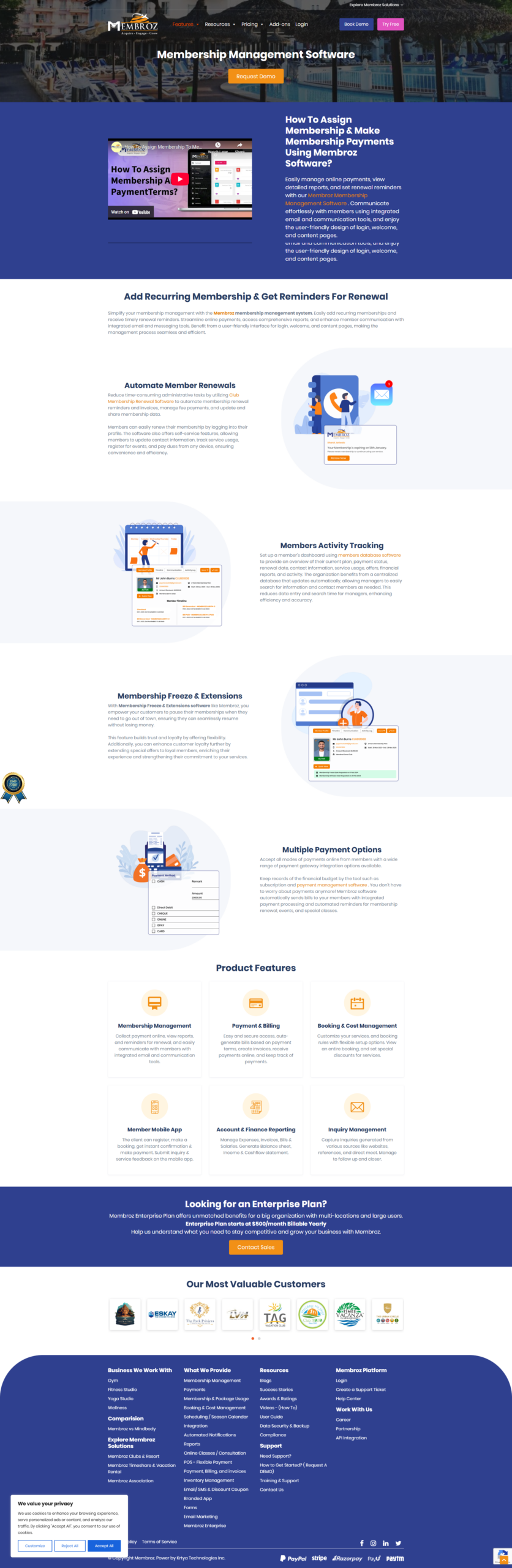 Membroz is a cloud-based software for managing memberships, bookings, and payments for gyms, resorts, and clubs.