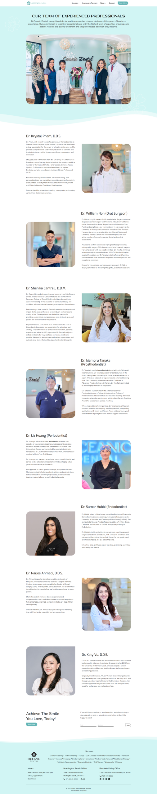 Positioned Oceanic Dental as a provider of attentive, one-on-one care, emphasizing comfort, tailored treatment plans, and patient prioritization throughout the site.