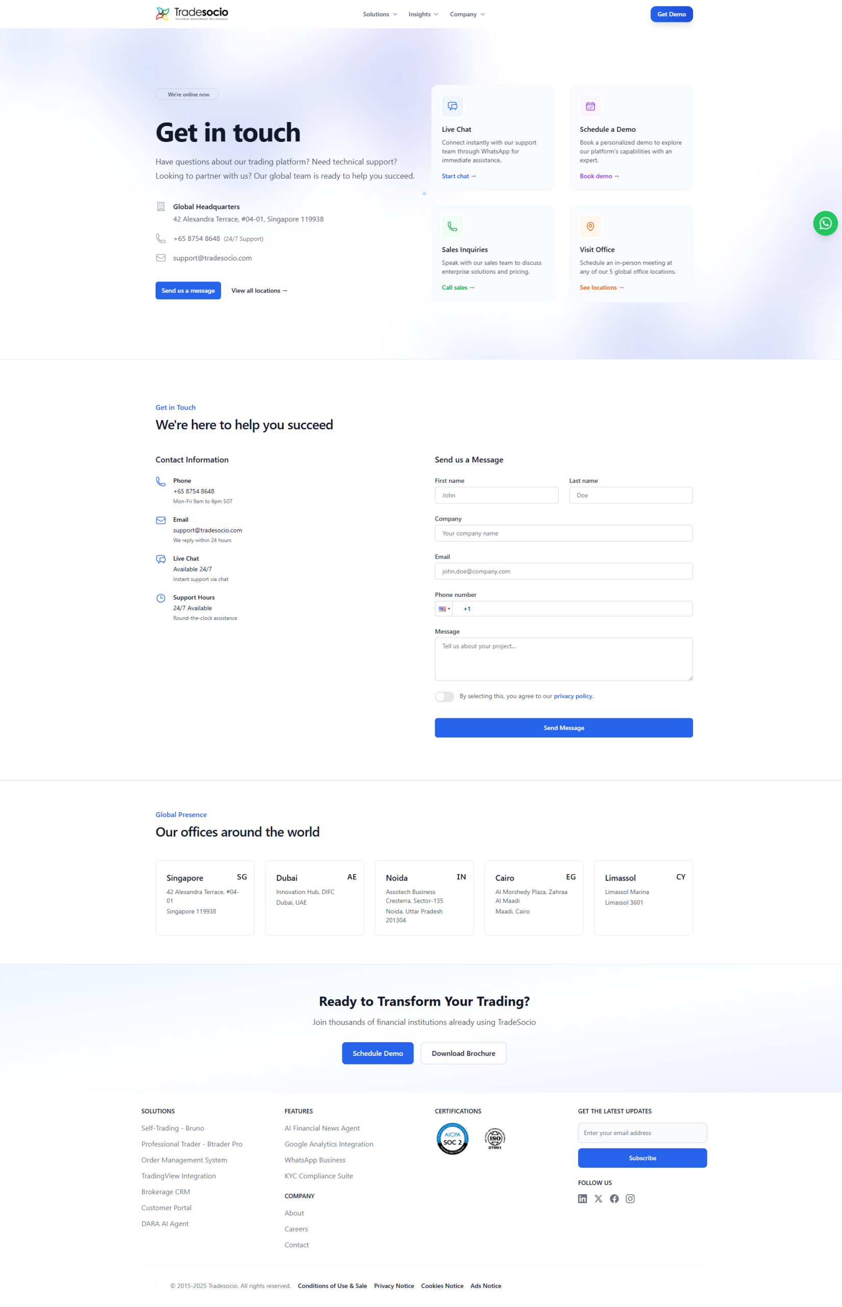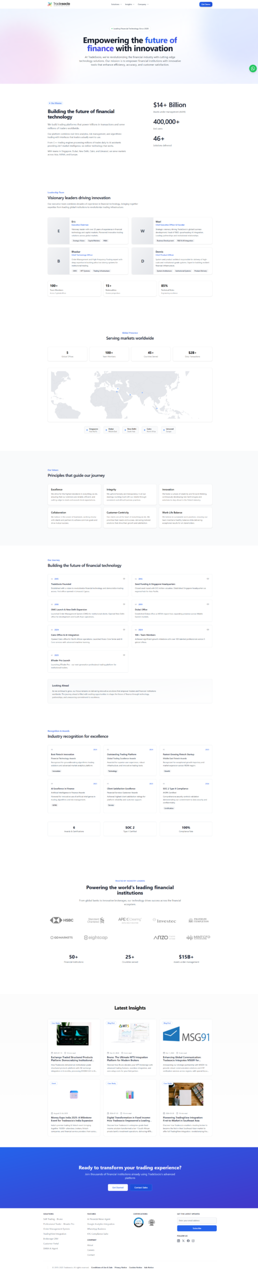 TradeSocio required a modern, technology-forward website to communicate its complex trading solutions in a clear, engaging, and enterprise-ready manner. The website acts as a primary marketing and education channel for brokers, financial institutions, and professional traders.