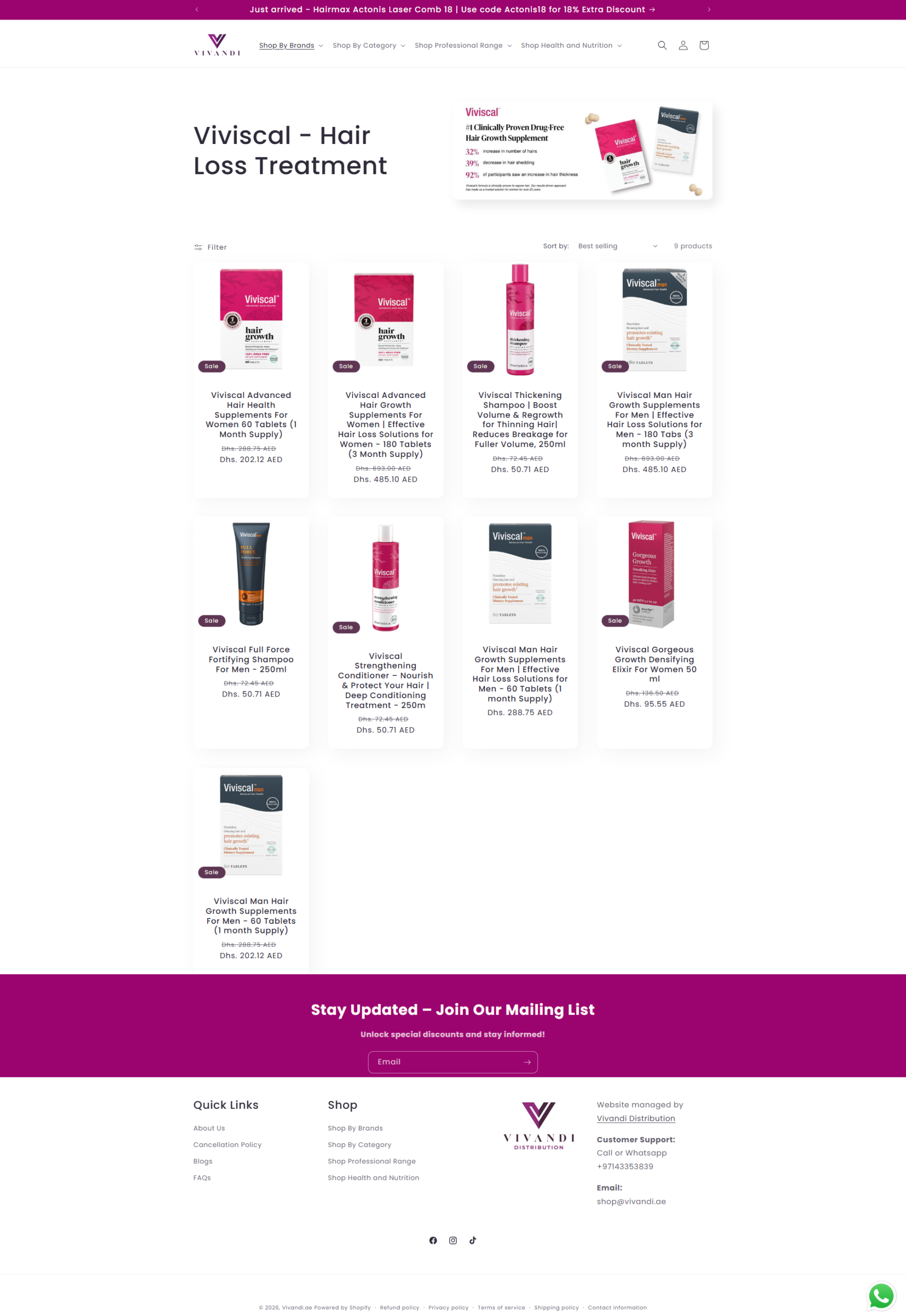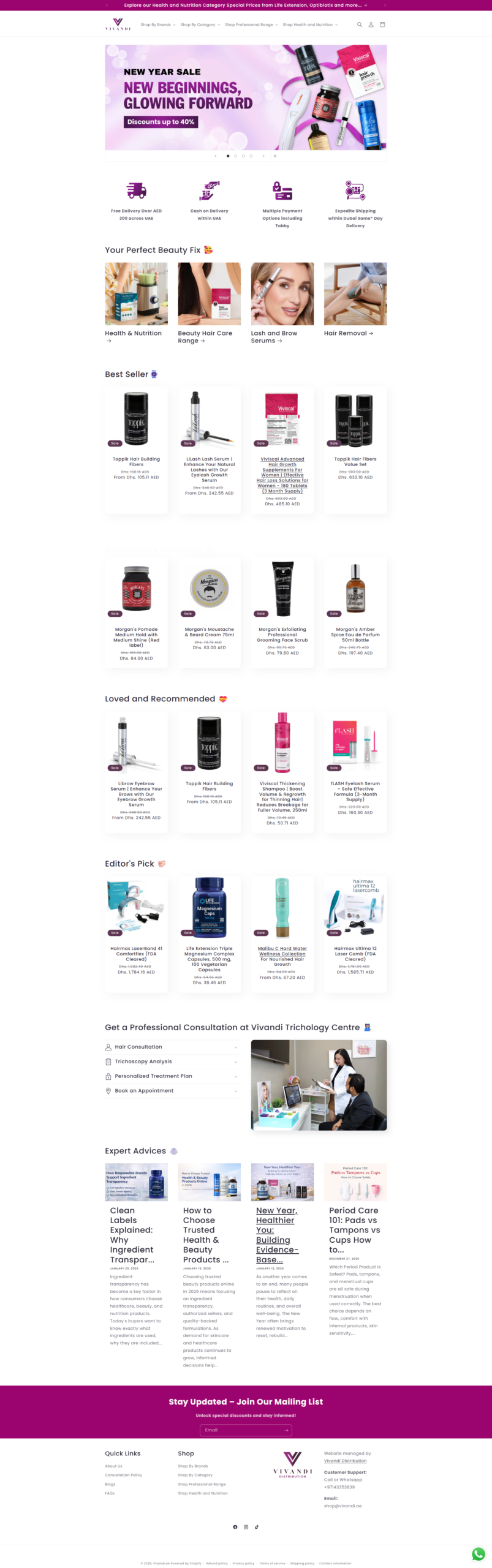 Vivandi’s website was developed to support both direct online retail and brand distribution services in the beauty, hair care, nutrition, and wellness sectors. The platform showcases a wide variety of international products from reputable global brands — including hair growth supplements, skin serums, grooming products, and health-oriented formulations — making it easy for users to browse, learn about, and purchase items.